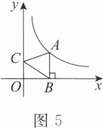 如图 5,点 $ A $ 在反比例函数 $ y = \frac{3}{x} $($ x > 0 $)的图象上,过点 $ A $ 作 $ AB \perp x $ 轴,垂足为点 $ B $,点 $ C $ 在 $ y $ 轴上,则 $ \triangle ABC $ 的面积为()。