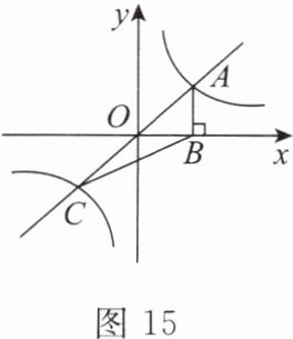 如图 15,正比例函数 $ y = kx $ 与反比例函数 $ y = \frac{4}{x} $ 的图象相交于 $ A $,$ C $ 两点,过点 $ A $ 作 $ x $ 轴的垂线交 $ x $ 轴于点 $ B $,连接 $ BC $,则 $ \triangle ABC $ 的面积等于()。
