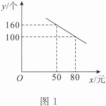 例 某公司研发了一款成本为 50 元/个的新型玩具,投放市场进行试销售。其销售单价不能低于成本价,按照物价部门的规定,这款玩具每件的利润率不得高于 90%。经市场调研发现,在一段时间内,该玩具每天销售数量 $ y $(个)与销售单价 $ x $(元)符合一次函数关系,如图 1。