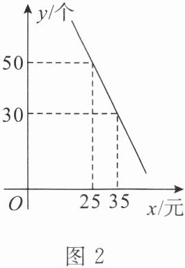 4. 某商场新进一批拼装玩具,进价为每个 10 元,在销售过程中发现,日销售量 $ y $(个)与销售单价 $ x $(元)之间满足图 2 所示的一次函数关系。