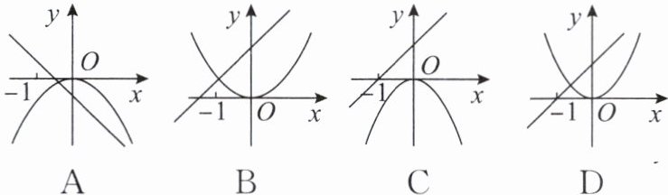 6.D 提示:一次函数$y=ax+a$的图象与x轴交于点$(-1,0)$,故可排除选项A,B.当$a>0$时,二次函数$y=ax^{2}$的图象开口向上,一次函数$y=ax+a$的图象经过第一、二、三象限;当$a<0$时,二次函数$y=ax^{2}$的图象开口向下,一次函数$y=ax+a$的图象经过第二、三、四象限.排除选项C.