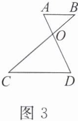 3. 如图 3,$AD$与$BC$相交于点$O,AB// CD$.若$BO = 1,CO = 3,AO = 0.8$,则$DO$的长为