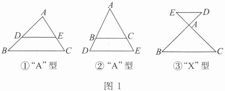 相似。如图 1,DE // BC,则△ADE ∽△ABC。图 1 中的基本图形可分别记为“A”型或“X”型。