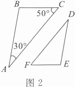 1. 如图 2,若△ABC ∽△DEF,则∠E 的度数为(