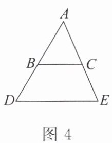 3. (1)如图 4,在△ABC 中,点 D,E 分别在 AB,AC 的延长线上,且 BC // DE,则△ABC ∽△