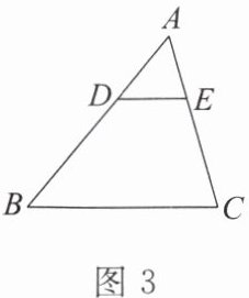 2. 如图 3,在△ABC 中,DE // BC,若 AD = 1,AB = 3,则$\frac{DE}{BC}$的值为(