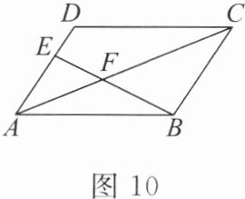 4. 如图 10,在▱ABCD 中,E 为 AD 边上的点,连接 BE,交 AC 于点 F。