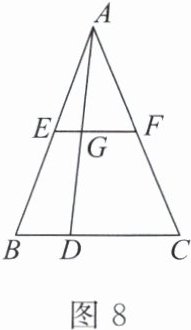 2. 如图 8,在△ABC 中,点 D,E,F 分别在边 BC,AB,AC 上,EF // BC,AD 与 EF 相交于点 G,则图中相似三角形共有(