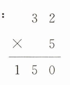 $\begin{array}{r}3\ 2 \\×\ \ \ \ 5 \\\hline1\ 5\ 0 \\\end{array}\\ $