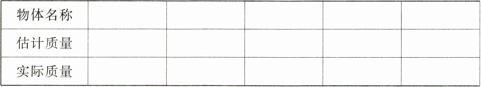 2. 我来动手称:选择几种物品,先估计大约有多重,再用秤称一称,填在下面的表格里。