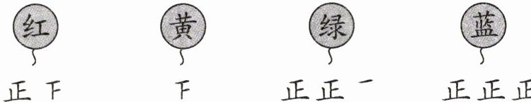 3.元旦节,三年级一班教室里布置了许多气球,小明用画“正”字的方法记录了各种颜色气球的数量,结果如下。