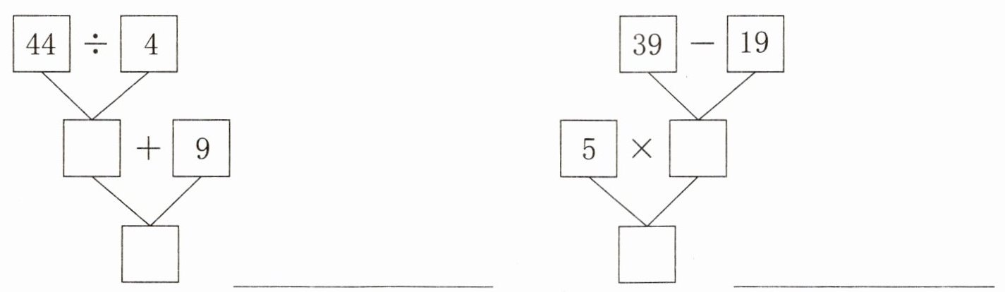 11 20 44÷4+9=20 20 100 5×(39-19)=100