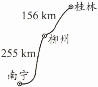 6. 桂林到柳州的铁路线大约长 156 千米,柳州到南宁的铁路线大约长 225 千米。一列火车从桂林出发,按图中线路平均每小时行驶 130 千米,若中途不停车,4 小时能到达南宁吗?