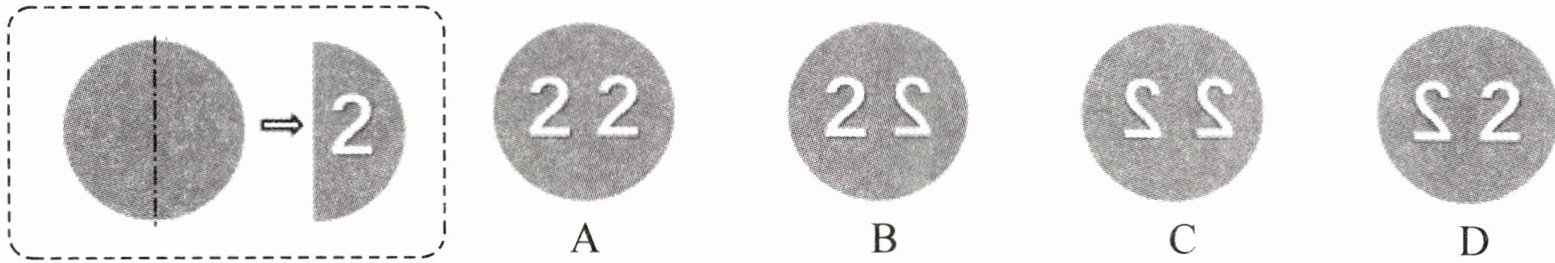 4. 小丽把一张圆形纸片对折后,按照左下图挖去数字“2”,再把圆形纸片展开,得到的轴对称图形是( )。(填序号)