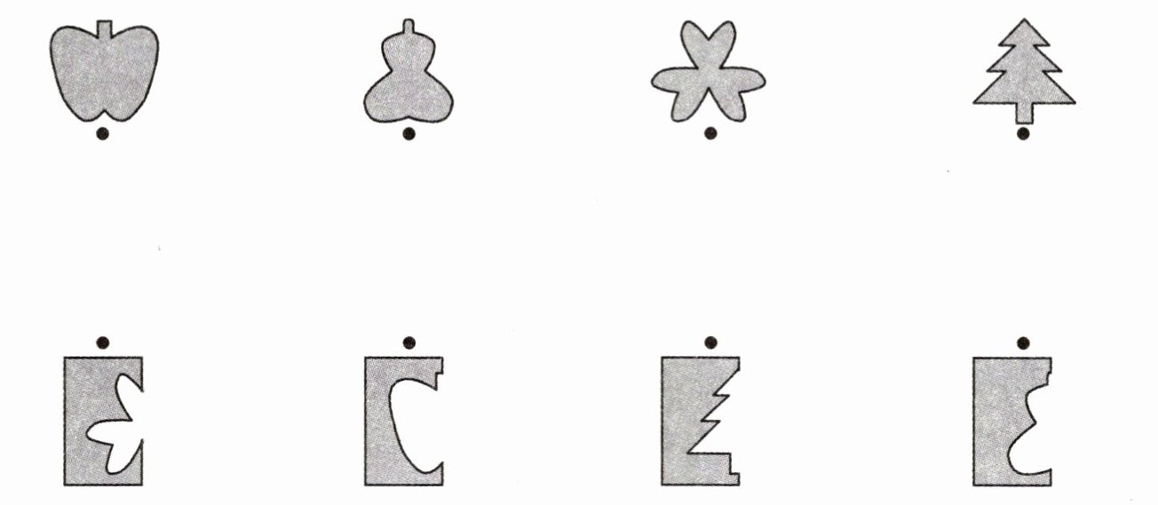 3. 下面的图案各是从哪张纸上剪下来的?连一连。