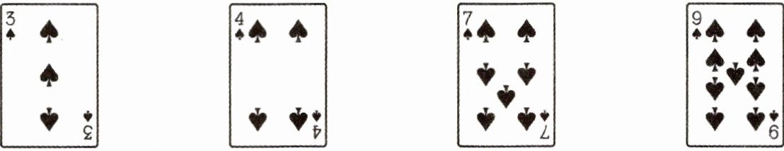 8. 用下面 4 张扑克牌上的数,通过加、减、乘、除法进行计算,使得数是 24,每个数字只能用一次。请写出算式。