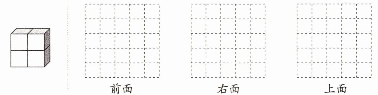 摆成一个长方体,如果从上面看到的是如下图的长方形,先想一想这个长方体应该怎样摆放,再在方格纸上分别画出从前面和右面看到的图形。