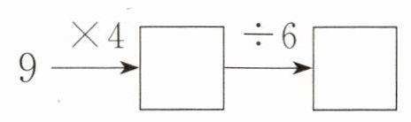 $9\xrightarrow{×4}□\xrightarrow{÷6}□$ $\quad 9×4÷6= $