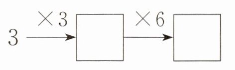 $3\xrightarrow{×3}□\xrightarrow{×6}□$ $\quad 36\xrightarrow{÷9}□\xrightarrow{÷2}□$