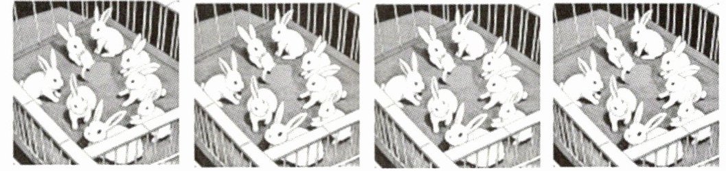 5. 李奶奶养了$4$笼白兔,每个笼子里有$8$只。李奶奶还养了灰兔,灰兔比白兔少$6$只。
