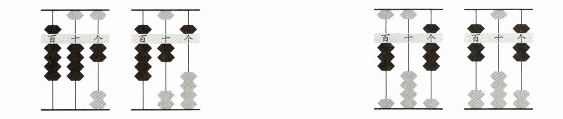 点拨 算盘拨珠靠梁,一颗下珠表示 1,一颗上珠表示 5。