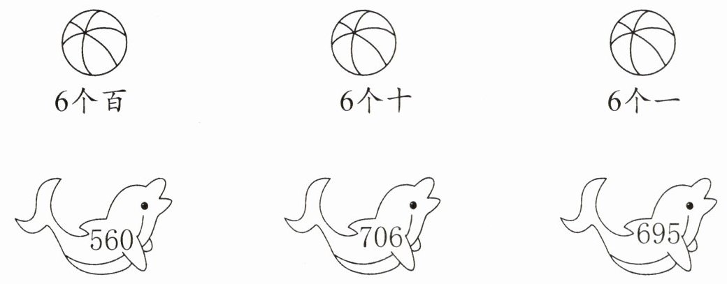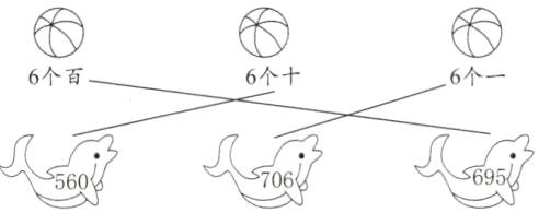 2. 下面数中的“$6$”分别表示多少?连一连。