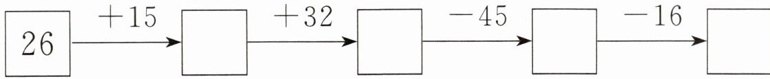 $\boxed{26}\xrightarrow{+15}\boxed{}\xrightarrow{+32}\boxed{}\xrightarrow{-45}\boxed{}\xrightarrow{-16}\boxed{}$