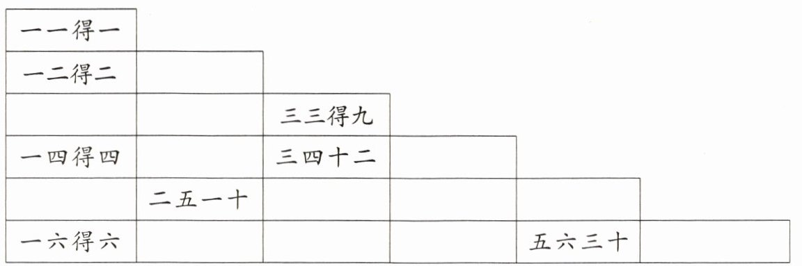 一三得三 一五得五 二二得四 二三得六 二四得八 二六十二 三五十五 三六十八 四四十六 四五二十 四六二十四 五五二十五 六六三十六