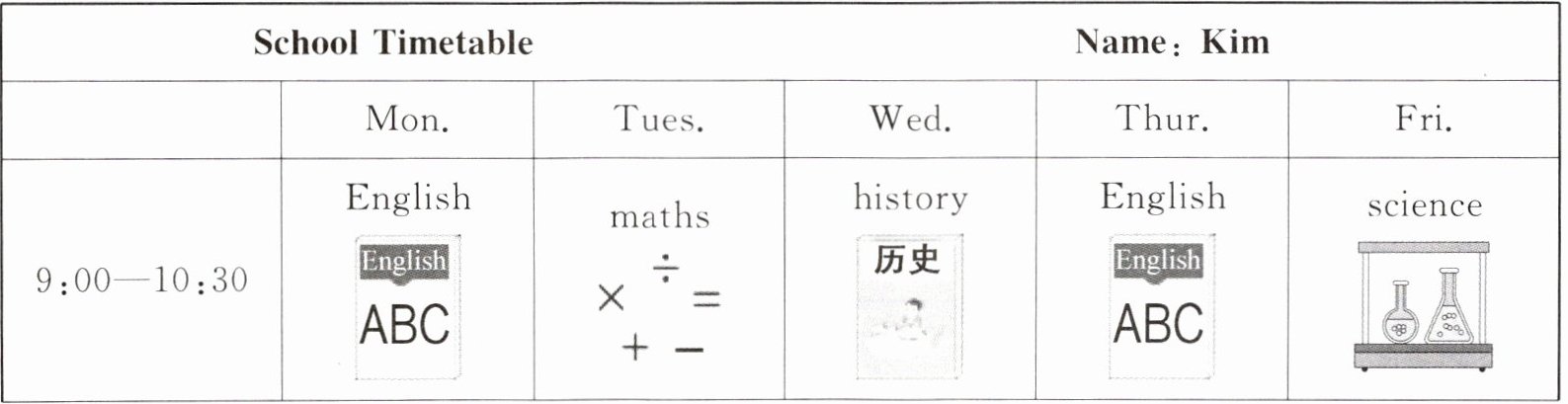 ( )2. What day does Kim have maths class?