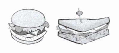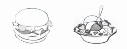 1. milk, water, tea, apple juice 2. salad, beef noodles, hamburger, sandwich