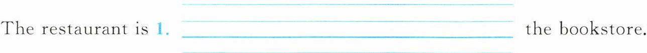 The restaurant is 1. ____ the bookstore.