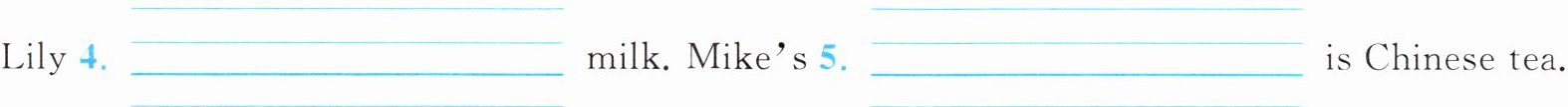 Lily 4. ____ milk. Mike's 5. ____ is Chinese tea.