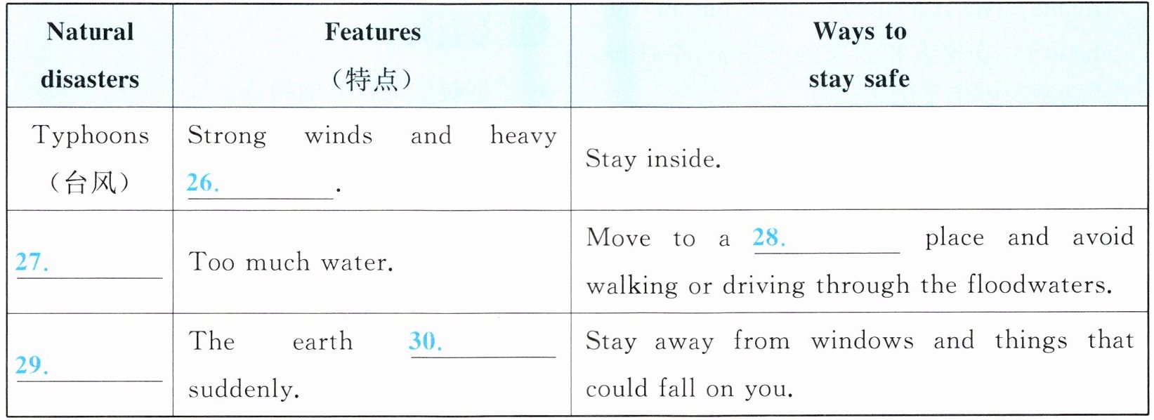26. rain 27. Floods 28. higher 29. Earthquakes 30. shakes