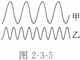 4. 研究表明:海洋动物越重,其叫声越是大而低沉。已知蓝鲸比海豚重得多,科考船的声呐系统某次收录到海豚和蓝鲸的叫声,其声音的波形如图2-3-5所示,其中______(选填“甲”或“乙”)曲线表示海豚发出声音的波形。若此时录得甲的声音为40 dB,则乙声音的响度可能为______(选填“80”或“20”)dB。