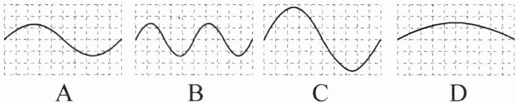 C 【解析】分别用较小的力和较大的力敲同一音叉时发出的声音,发出声音的音调和音色相同,只有响度不同,则声波波形的疏密程度和形状相同而振幅不同。对比原图可知,A图的波形说明声音的音调和响度均相同,故A错误;B、D图的波形说明声音的音调发生改变,故B、D错误;C图的波形说明声音的音调和音色均不变,响度变大,故C正确。