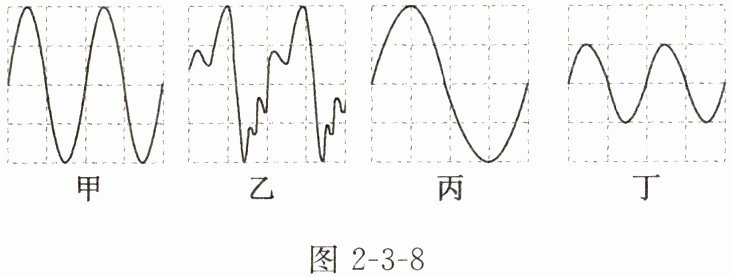 8. 图2-3-8是几种声音输入到同一设置的示波器上时显示的波形,其中音调相同的是______,响度相同的是______,音色相同的是______。