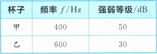 |杯子|频率$f/Hz$|强弱等级/$dB$|