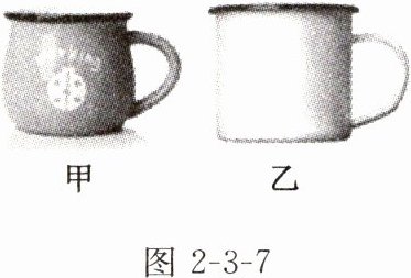 7. 如图2-3-7所示的甲、乙两个水杯大小和材质均不同,把它们分别放在某处,小凯用木筷敲杯子使其发出声音,用专业仪器在相同距离处测得杯子所发声音的相关数据如下表所示。下列说法正确的是( )。