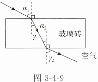 7. (多选)一束光从空气中斜射向一块上下表面平行的玻璃砖,光最后穿出,其光路如图 3 - 4 - 9 所示。下列关系式正确的是( )。