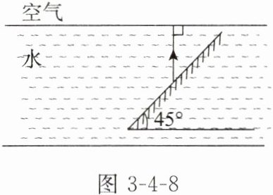 6. 如图 3 - 4 - 8 所示,已知经平面镜反射后的反射光线,请画出射向平面镜的入射光线和进入空气的折射光线。