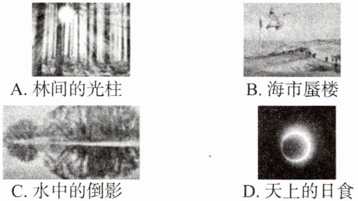 2. 下列光现象中,主要由光的折射形成的是( )。