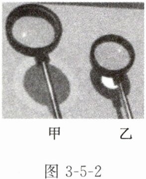 1. 将无色透明的甲、乙两个透镜分别正对太阳光,在光屏上出现了如图 3 - 5 - 2 所示的光斑。依据在地面上观察到的现象,可以判断乙透镜是( )。