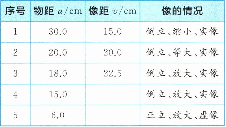 |序号|物距$u/cm$|像距$v/cm$|像的情况|