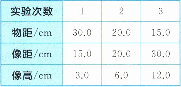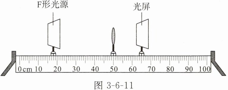 10. 跨学科 如图3 - 6 - 11所示,用焦距为10.0 cm的凸透镜、高度为6.0 cm的“F”形光源、光屏和光具座等器材探究凸透镜成像大小的变化规律,通过测量像的高度反映像的大小。