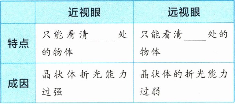 | 特点 | 只能看清______处的物体 | 只能看清______处的物体 |