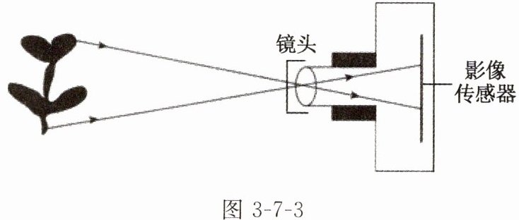 例 2 (多选)图 3 - 7 - 3 是数码相机的成像原理示意图,镜头相当于一个凸透镜,影像传感器相当于光屏。拍照时,将镜头对准景物,相机通过自动调节,就能在传感器上得到清晰的像。下列说法正确的是( )。