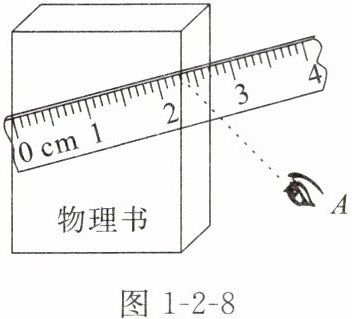 10. 小明用一把刻度尺测量物理书的宽,他的测量方法如图 1 - 2 - 8 所示,A 是小明观察读数时眼睛的位置。