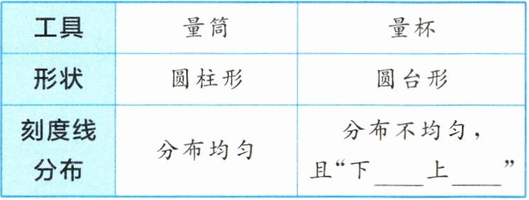 (3) “排液法”测体积:在量筒(或量杯)中注入适量的液体,记下液面对应的示数 $ V_1 $,再将物体用细线系好慢慢放入,使之浸没在液体中,记下液面对应的示数 $ V_2 $,则物体的体积 $ V = $______。