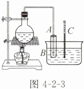 8. 如图4-2-3所示,将烧瓶内水沸腾时产生的水蒸气通入试管A中,试管A放在装冷水的容器B内,过一段时间,观察到试管A中产生的现象是______,同时看到温度计C的示数升高。这个实验说明了水蒸气液化时要______热量。