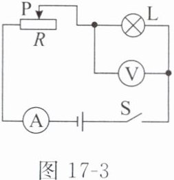 2. 如图 17 - 3 所示,闭合开关$ S $,在滑动变阻器滑片$ P $移动过程中,灯突然熄灭,电压表和电流表均无示数。若电路中仅有一处故障,则故障不可能是( )